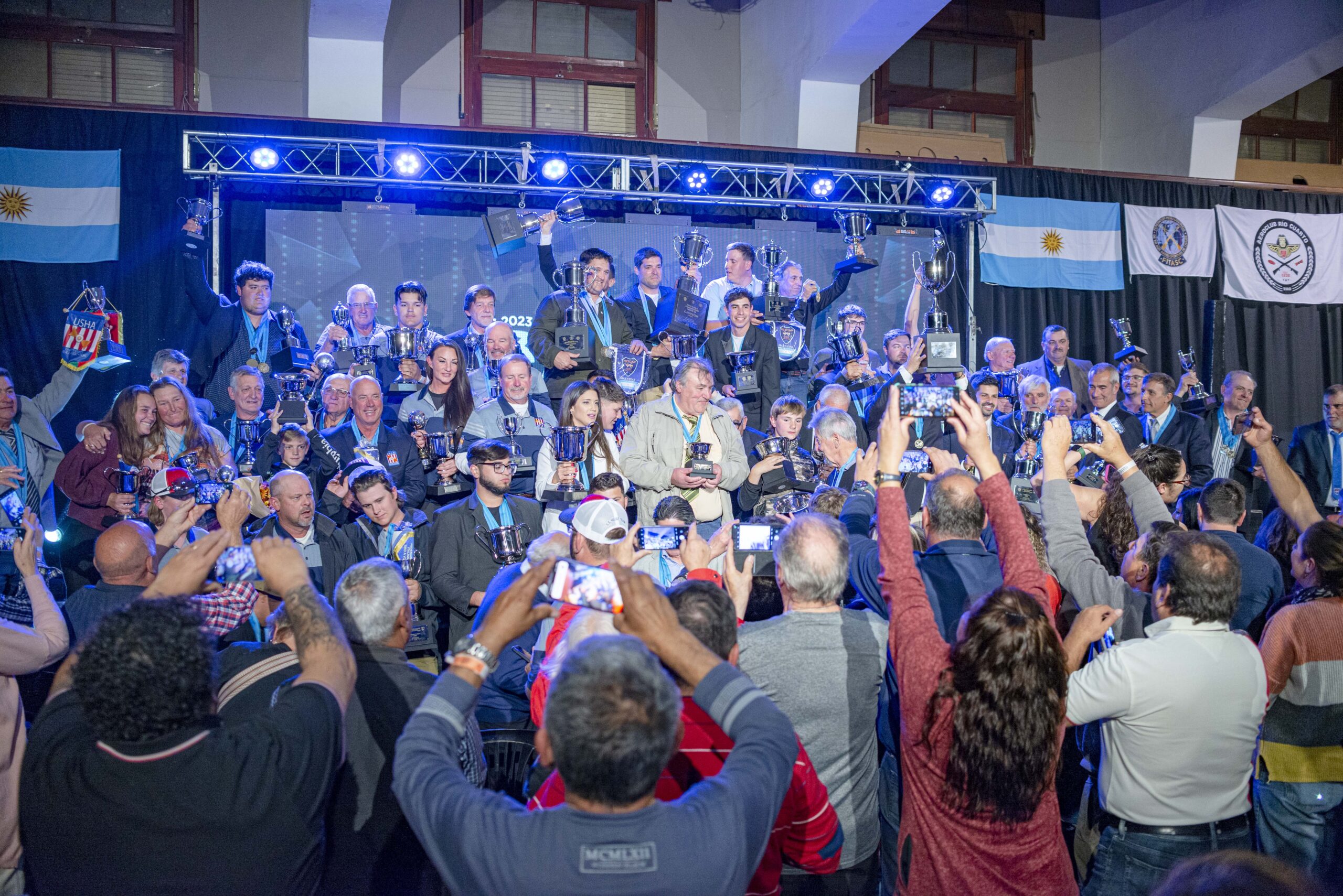 En el marco del cierre del Campeonato Mundial de Tiro a la Hélice disputado en el predio del Aero Club Río Cuarto, este domingo el Centro 11 se vistió de gala para recibir y coronar a los tiradores destacados de la 33° edición del torneo internacional. En la ocasión, la Coordinadora de Turismo del Gobierno de Río Cuarto Araceli Isla junto a las autoridades del evento felicitaron y premiaron a los ganadores individuales y por equipos, donde Argentina se llevó el título mundial en la categoría Open logrando las tres primeras posiciones.